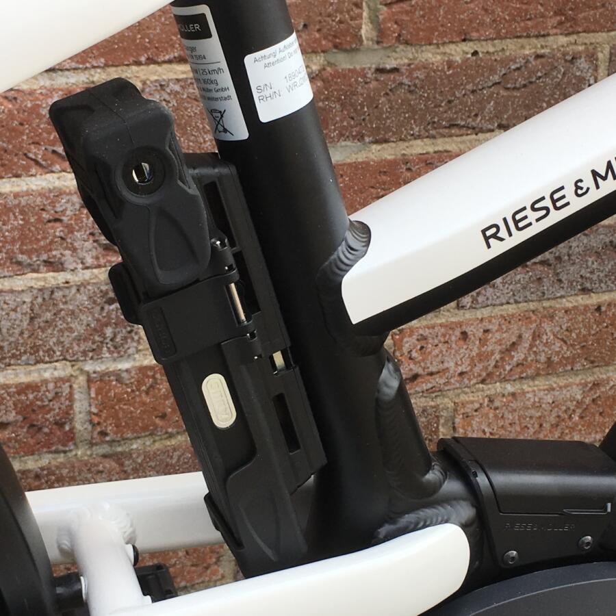 Weitere Details: Das Bordo Faltschloss ist mit dem Akkuschloss gleichschließend. Die Ladebuchse befindet sich im unteren Rahmendreieck und ist mit einem magnetischen Deckel geschützt. Der Ursus Faltständer sorgt für sehr stabilen Stand auch bei voller Beladung.