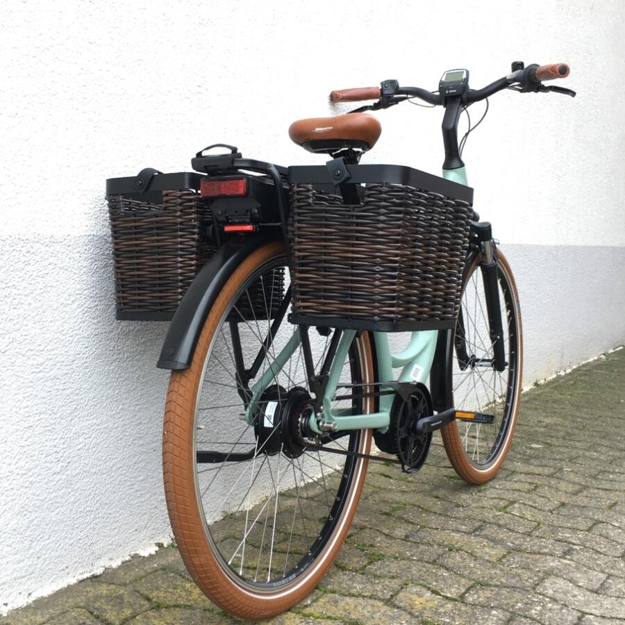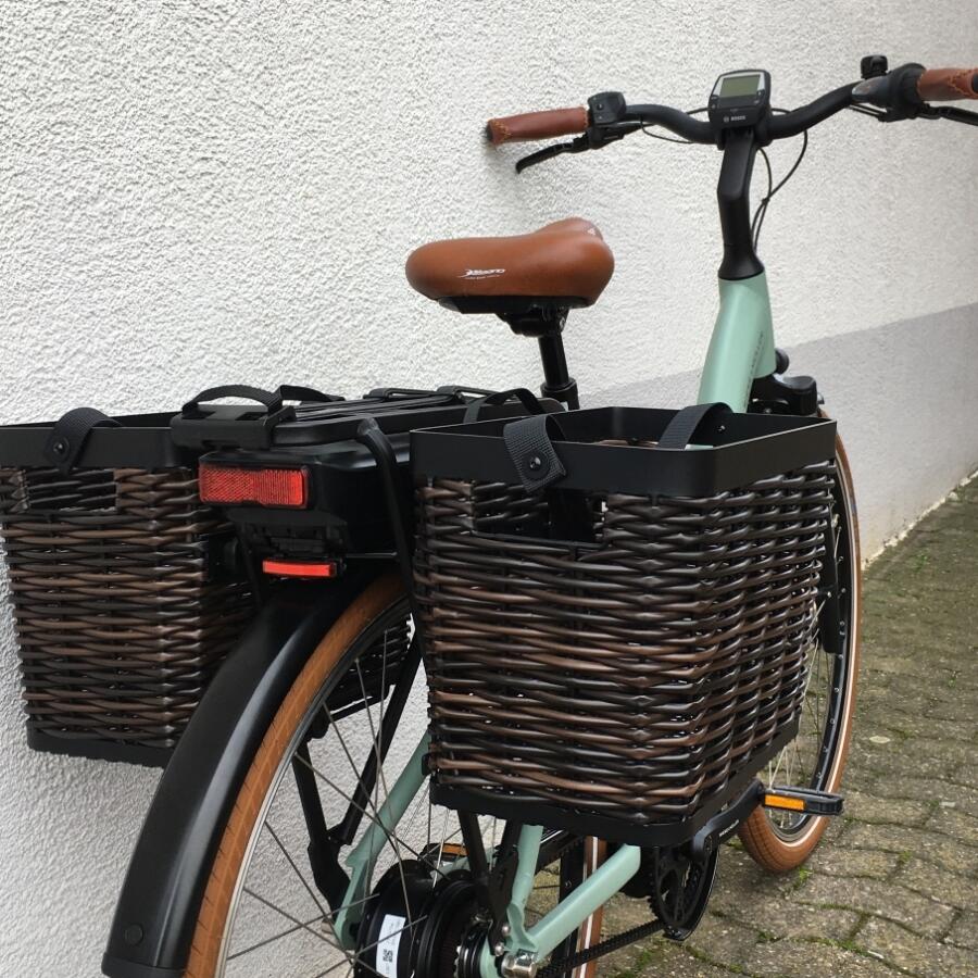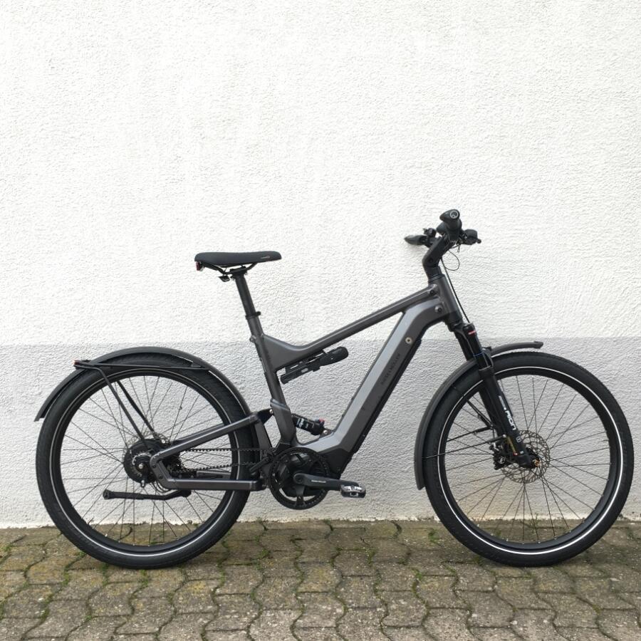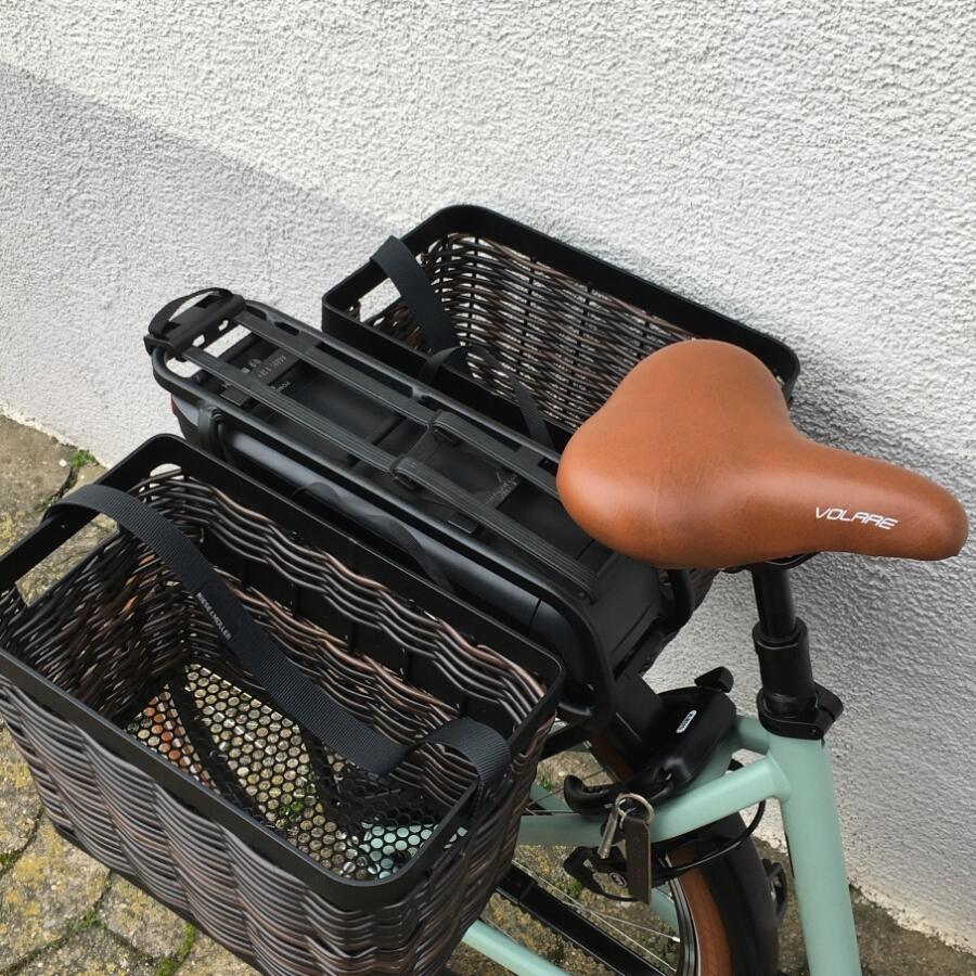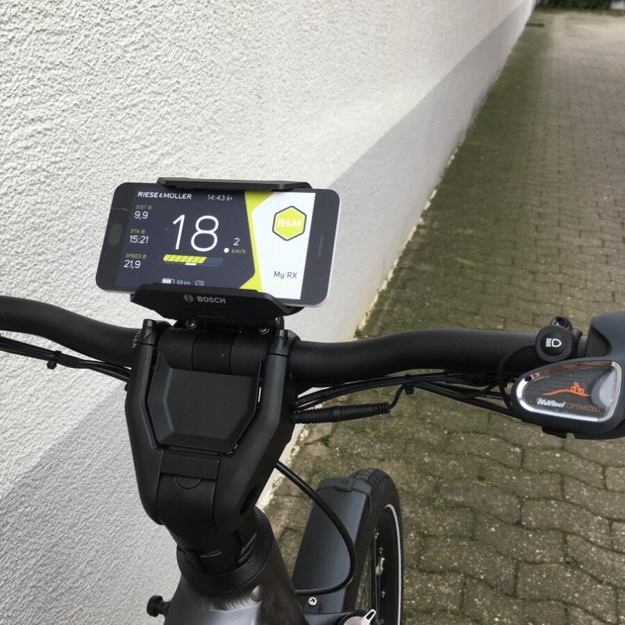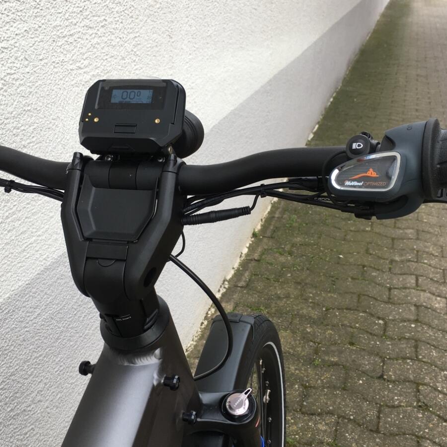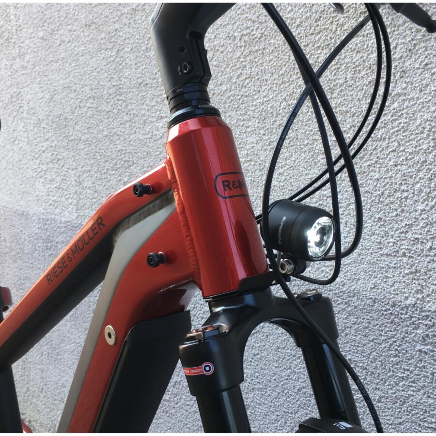 Als optionales Zubehör ist eine gepolsterte Sitzfläsche mit Haltegriffen an der Sattelstütze oder ein paar sehr große Packtaschen von riese & müller erhältlich.Das Trekkingrad von r&M mit Breitreifen in attraktiver Optik mit optionalem Bosch Kiox Display das im Vorbau integriert ist und per Magnet am Vorbau festgehalten wird.