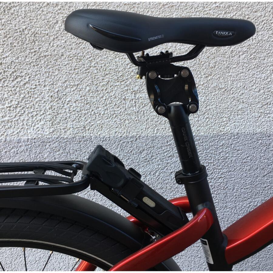 Ist die Sattelstütze eingesteckt oder entfernt, der Lenkerdom nach hinten eingeklappt ist auch ein Transport im Fahrzeug machbar.