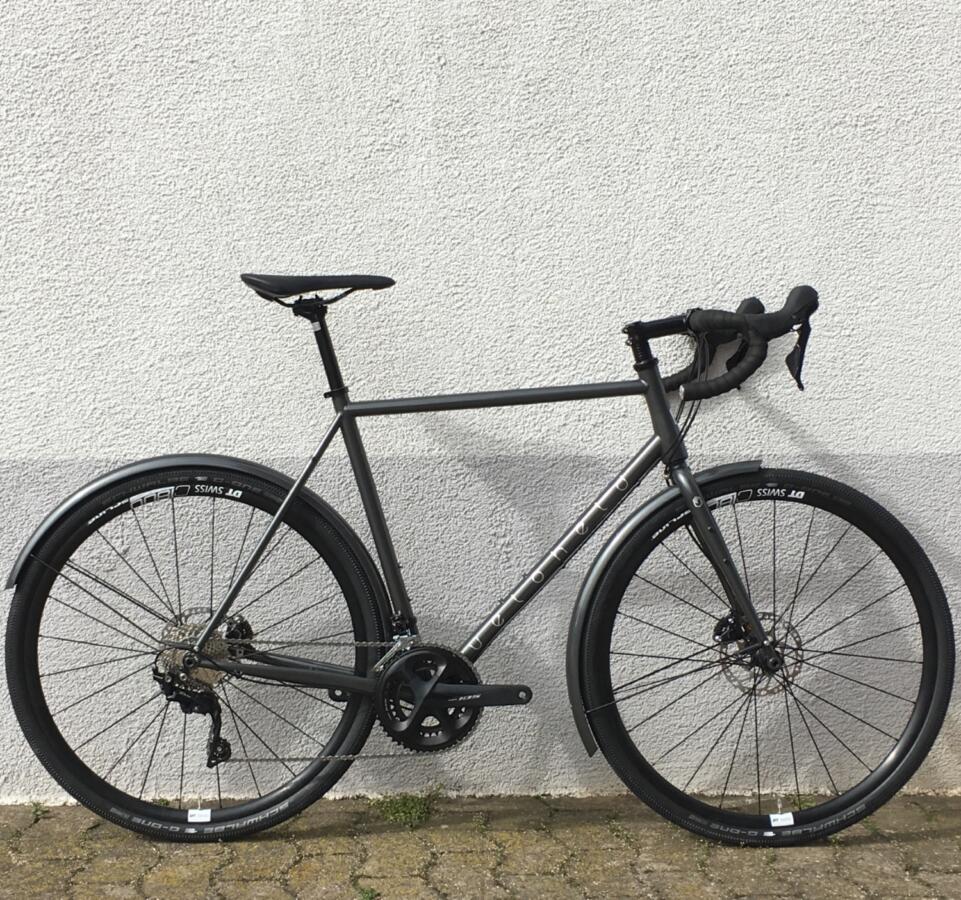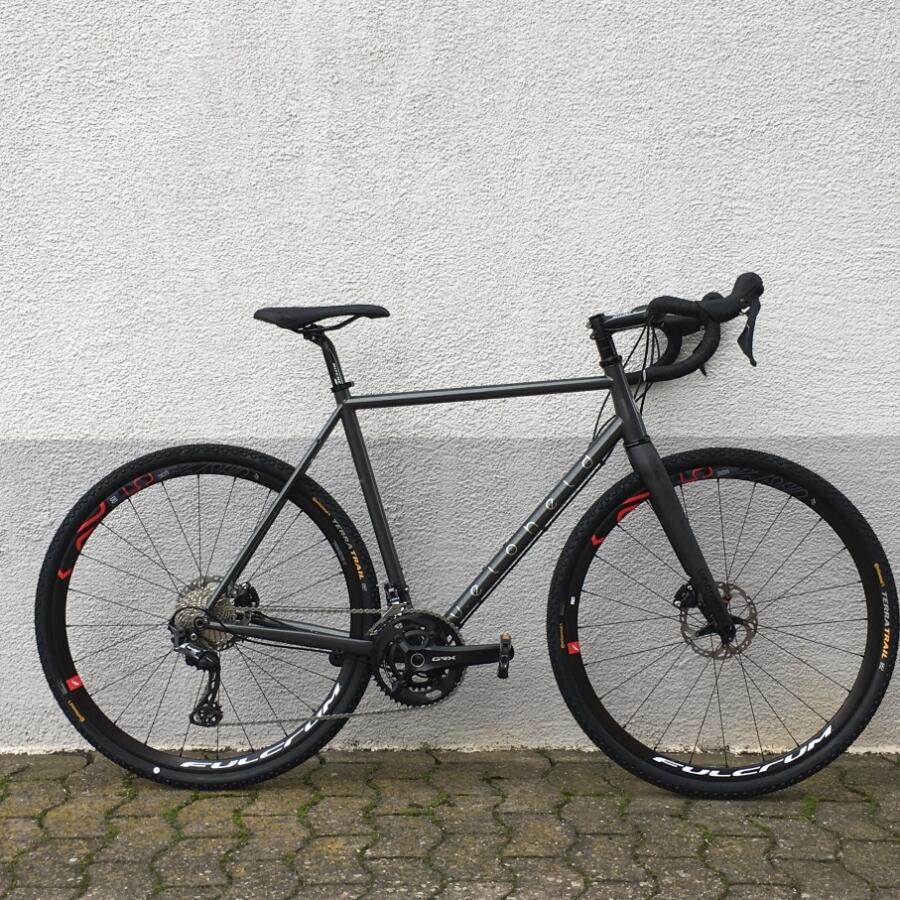 Gravelrad, Cyclecrosser oder Stadtrad für den täglichen Arbeitweg. Verschiedene Schaltungsgruppen, SRAM oder Shimano sind möglich, Steckachsen für erhöhte Steifigkeit. Radschützer in Rahmenfarbe sind genauso möglich wie eine Gepäckträgerbefestigung, Bereifung von 40-622 bis max 50-622 oder auch in 55-584 und weitere Optionen.